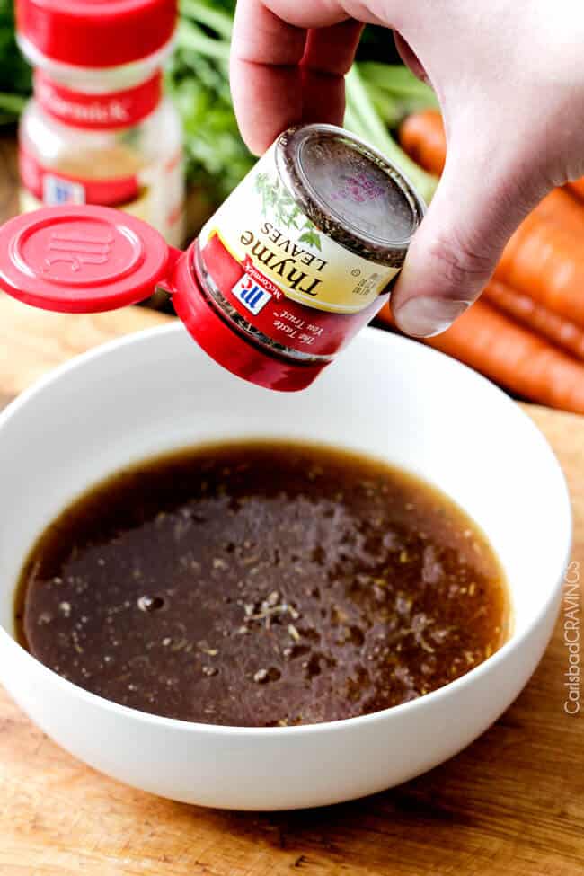 - Seasonings: Garlic powder, thyme, ground mustard, cumin, salt and pepper inject the glaze with a rainbow of flavor without overpowering it.