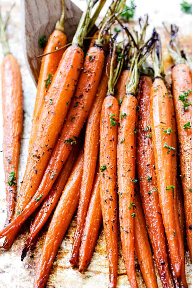 - Balsamic Roasted Carrots: See this recipe here.