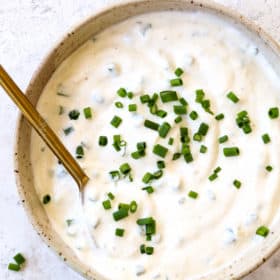 - Heavy cream and crème fraiche: are an alternate creamy base to sour cream and mayo. Whisk ½ cup heavy cream until thickened, but not to soft peaks. Fold in ½ up crème fraiche or sour cream along with the rest of the ingredients. Refrigerate for 30 to 60 minutes before using.