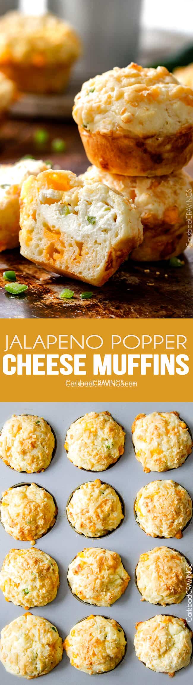 Your favorite jalapeno popper dip but in cheese muffin form- Jalapeno Popper Cheese Muffins! Â