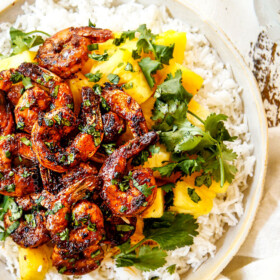 Thanks so much for your awesome comment/review Carol, I’m so pleased this jerk shrimp recipe is a new repeat favorite! Your side of pineapple yellow rice sounds perfect with it!