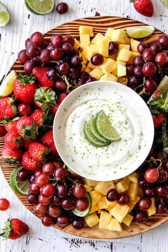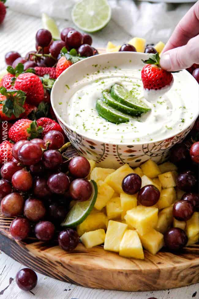 Easy Cream Cheese Fruit Dip that tastes like sweet and tangy Key Lime Cheesecake!