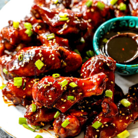 I honestly don’t find air frying these Korean Chicken Wings beneficial because they get plenty crispy in the oven – which is all we need before drenching them in the sauce. Using the oven method, you can cook all of the chicken at once, verses the air fryer which will require several batches. It is best to save the air fryer for when you really need that crackling crunch.