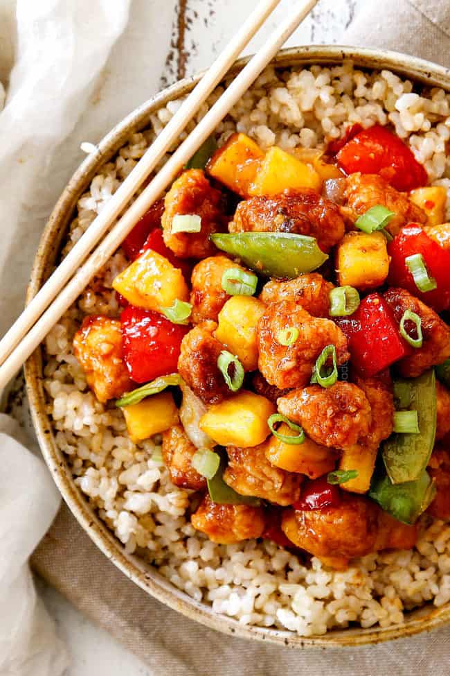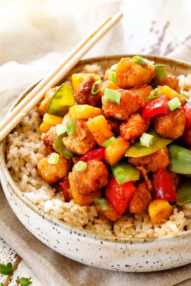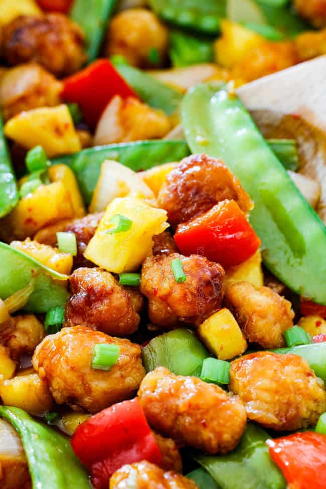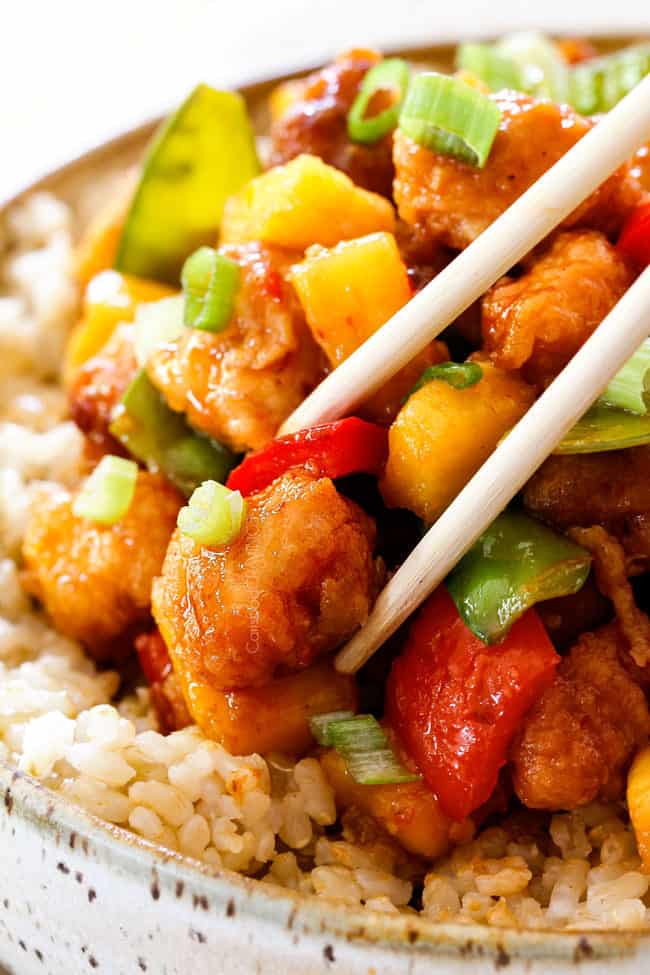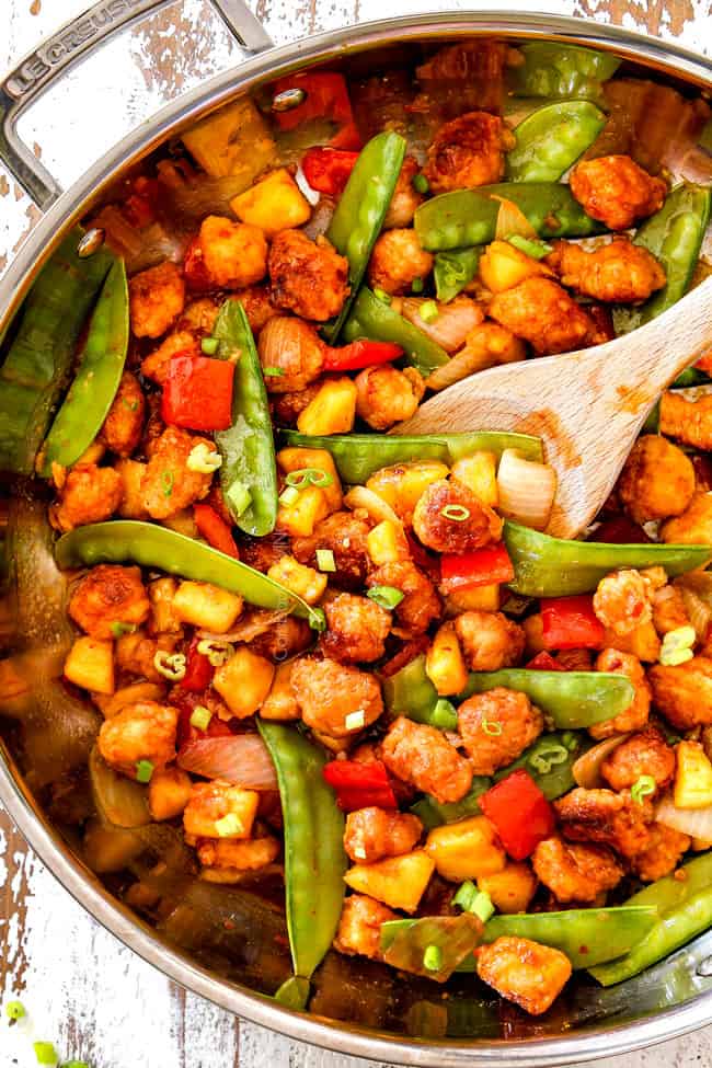 Over-the-top AMAZINGLY DELICIOUS! Being a lover of spicy food, I added 1.5 tablespoons of sambal oelek and 1 teaspoon of crushed red pepper. The extra heat, combined with the sweetness of the sauce and fresh pineapple, took this dish to a whole new level. The addition of red wine vinegar and sugar to the stir fry sauce was spot on .. the proportions were perfect. Also, instead of cornstarch, I used rice flour, because it gives a crispier crunchier coating. First, I coated the chicken with a small amount of rice flour ( about 3 tablespoons) in a gallon sized zip lock bag, then dipped in the egg, then finished with the rice flour/all-purpose flour coating.
