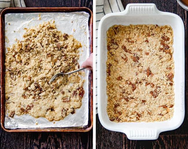 - Mix all of the Cookie Crumble ingredients together then spread evenly over a foil lined cookie sheet. Bake at 400 degrees for 10 minutes.
