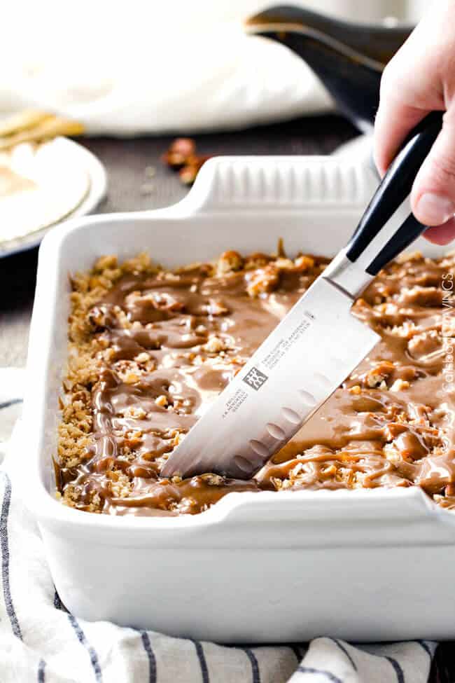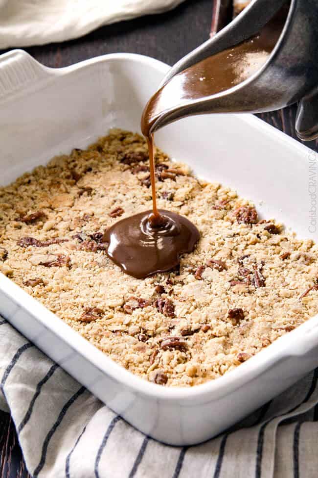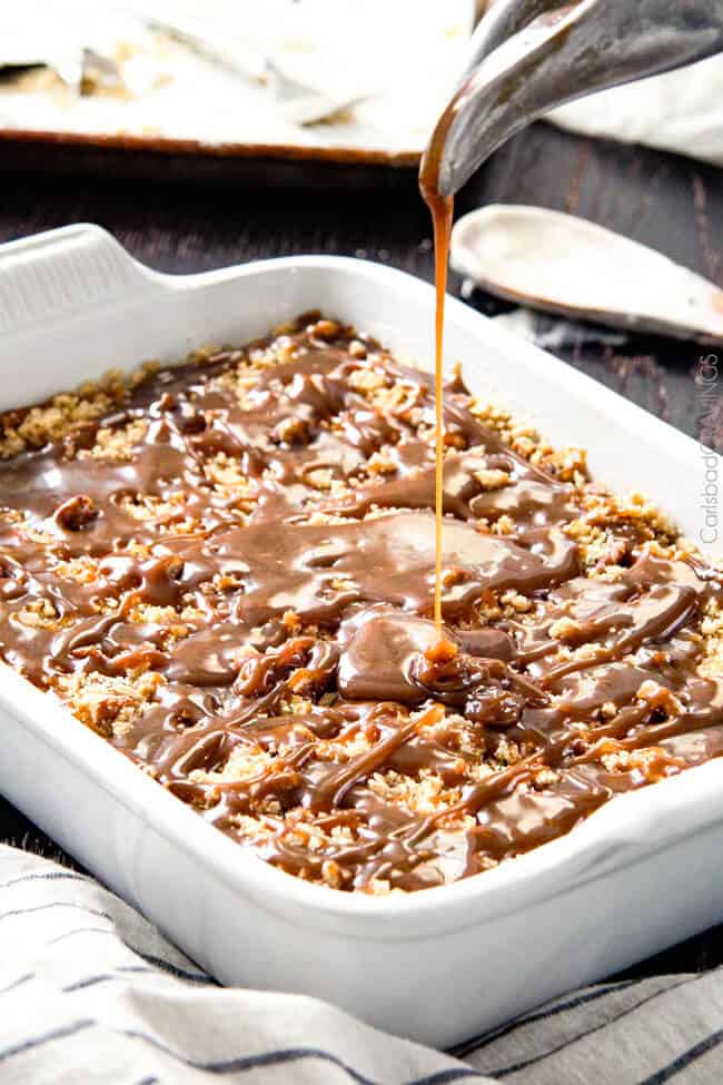 OMG!! 5 stars*****. Made this for my son’s birthday and the entire family loved it. The cookie crumble is to die for. The only thing I did different is after the ice cream layer, I sprinkled pecans on top before the cookie crumble then drizzled the caramel on top. I used a store bought caramel