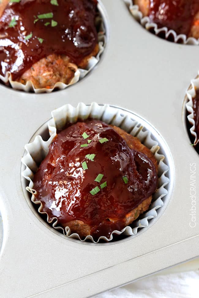 Every meatloaf needs a fabulous sauce to marry all of the flavors together. These Meatloaf Muffins are slathered with a delectable sweet, tangy and as spicy as you like easy mixture of barbecue sauce, ketchup, brown sugar, mustard and hot sauce. I love this glaze! It elevates these Meatloaf Muffins to a whole new level of YUM!