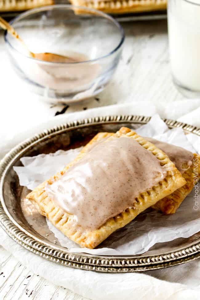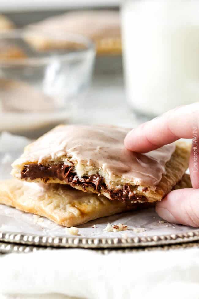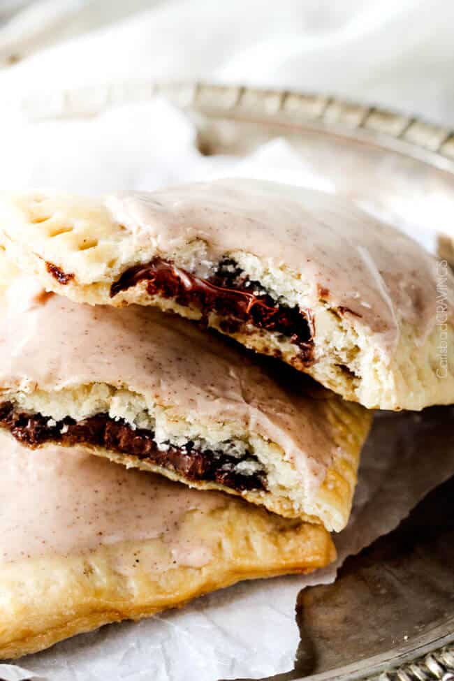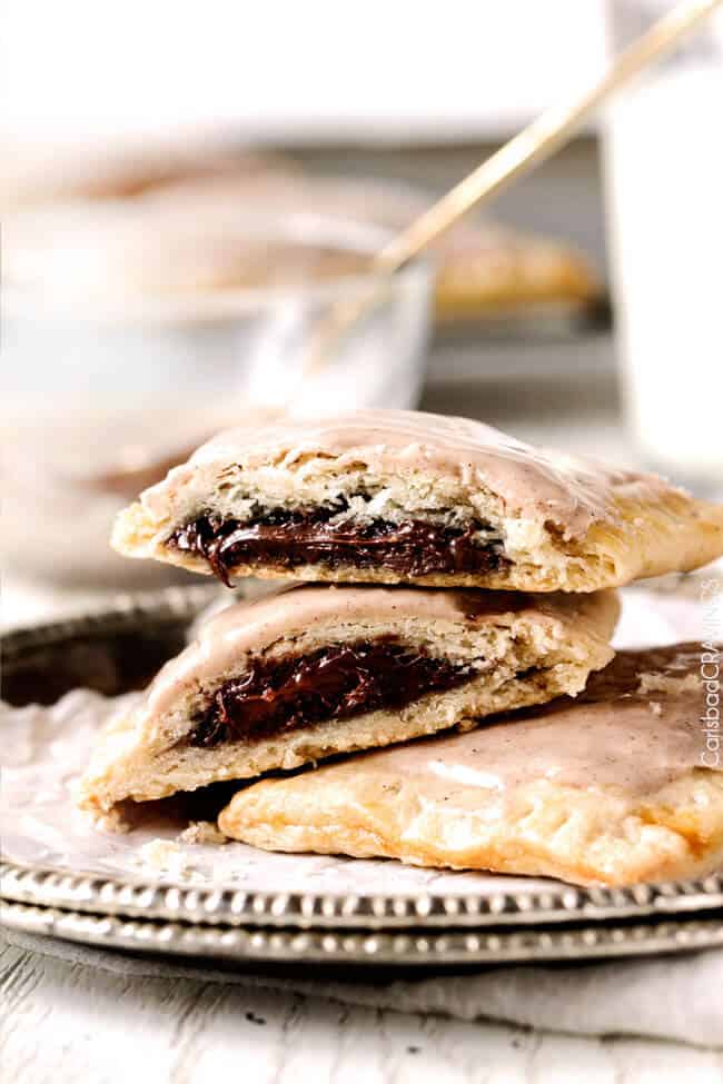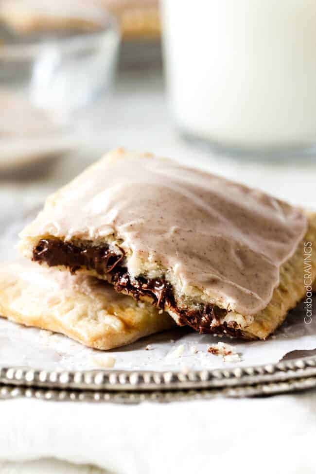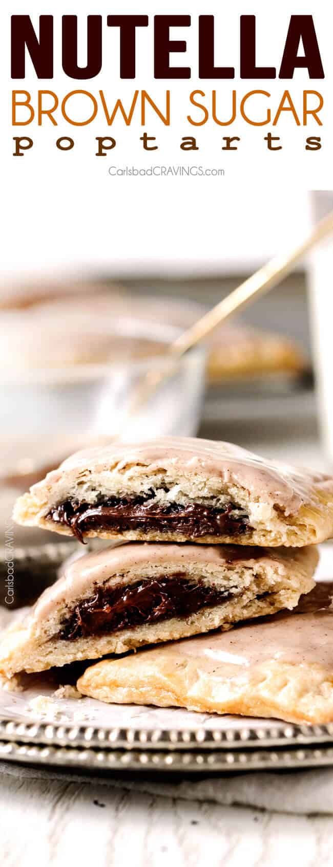 These melt in-your-mouth Homemade Pop Tarts are addicting! They boast a brown sugar Nutella filling cocooned in buttery, flaky pastry smothered with Cinnamon Vanilla Icing. They are made from scratch without any preservatives or food dyes and are worth every minute! – you will never go back to the box kind again!