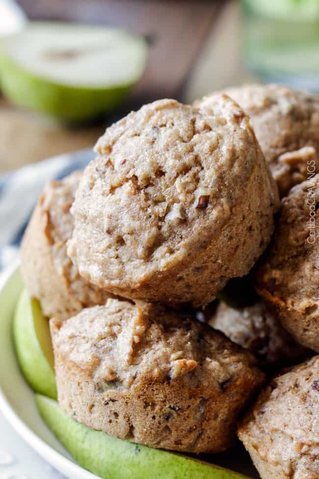 Pear Muffins riddled with Coconut and Pecans are crazy delicious, low fat, yet super moist and all made in ONE BOWL!