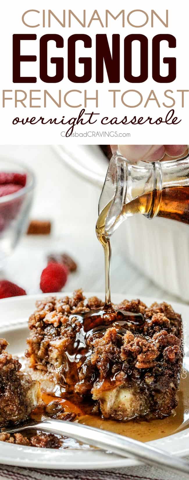 - eggnog: please use full fat eggnog or your Baked French Toast Casserole may be runny
