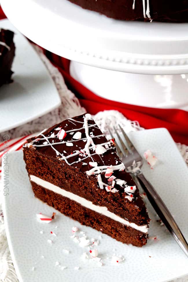 To serve, I LOVE to microwave the individual slices of Chocolate Peppermint Cake for 20 seconds or so for warm chocolaty cake, oozing peppermint frosting and melty chocolate ganache. That’s all I need to be filled with the Christmas spirit. I should just start the season off with this Peppermint Chocolate Cake next year. Done and done. Merry Christmas!