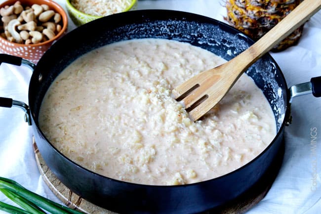I made this AMAZING rice to go with your Huli chicken to keep the tropical dinner theme and it was so good! i’ve made other coconut rice recipes before but the addition of the pineapple but especially the red thai curry paste, really takes the flavor to the WOW level. I did make 2 mistakes to point out to readers so they don’t make them, first I accidentally added the rice to the pan before bringing to a boil and I also used a medium sized sauce pan instead of a large skillet. This resulted in my rice becoming more mushy, but the flavor was still great and will make it again, the correct way!