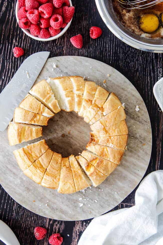 - Use bread instead of cake: I LOVE this angel food cake french toast recipe, but I understand not everyone wants to kick off their morning with cake. If desired, you can use a soft white bread instead of angel food cake. Think: French bread, challah, or brioche.