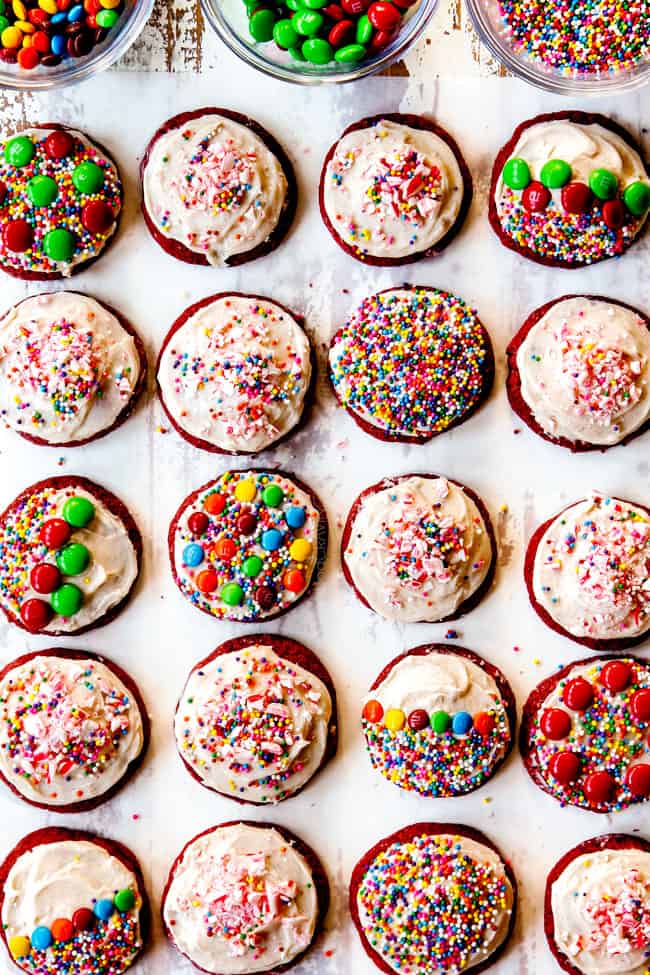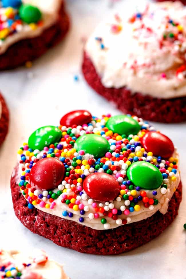 I made the Red Velvet cookies at Christmas and hands down the BEST Cookie EVER! This will be my all time favorite. They are amazing served warm. A few seconds in the microwave and they are fabulous. I am making these tonight with blue coloring for a winter themed birthday party.