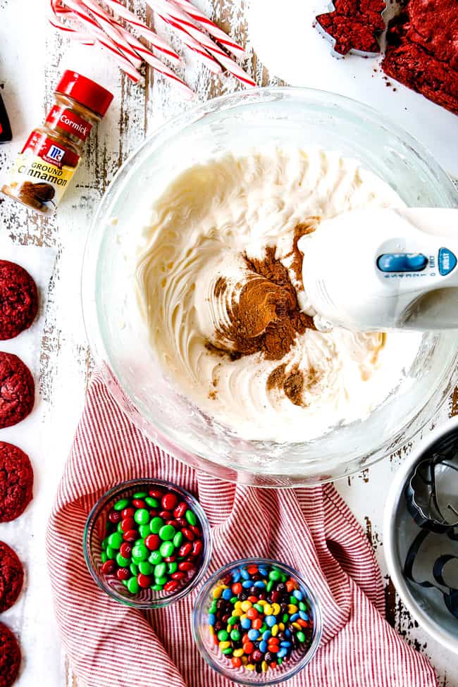 TWO Desserts – Red Velvet Brownies and Red Velvet Cookies with Eggnog Frosting using the same ingredients for twice the holiday cheer!