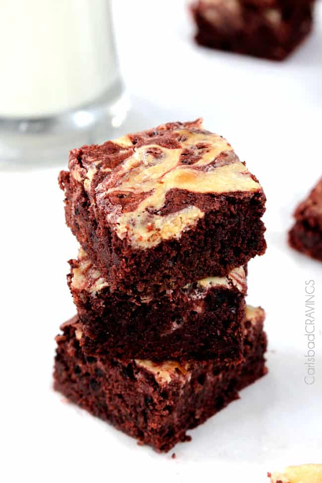 - Don’t over bake: Bake the red velvet cream cheese brownies just until a toothpick inserted in the middle comes out clean. You want these babies to come out nice and fudgy!