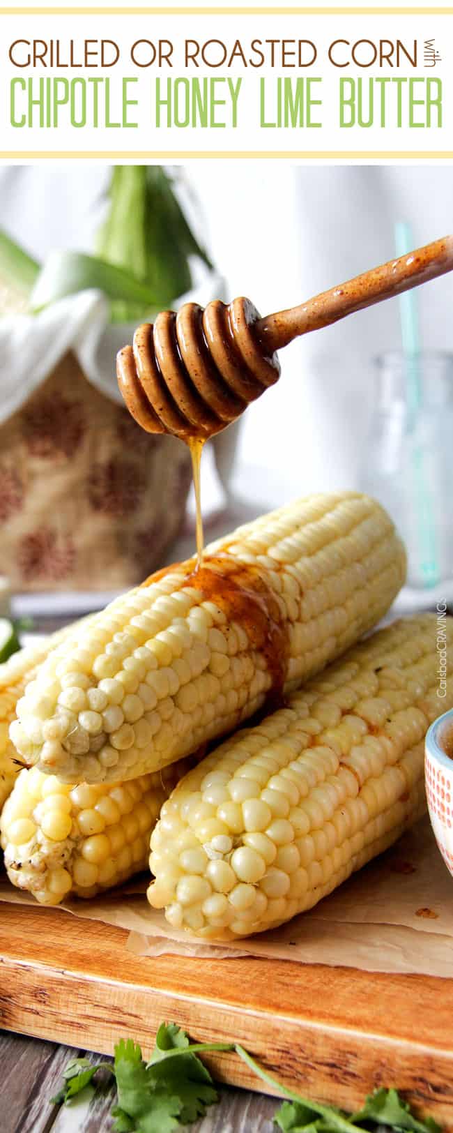 Roasted or Grilled Corn with Chipotle Honey Lime Butter