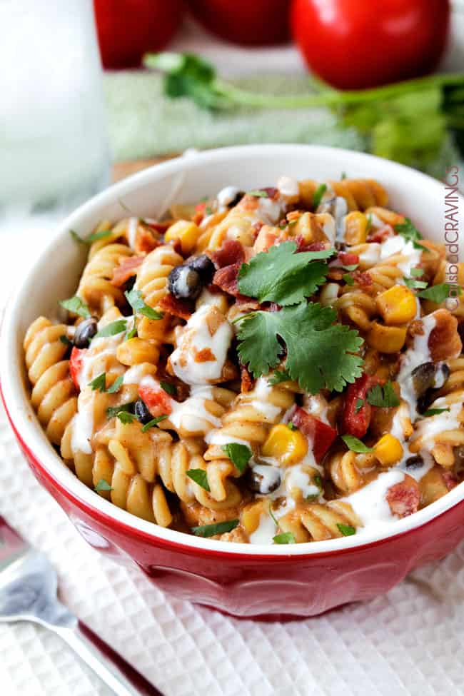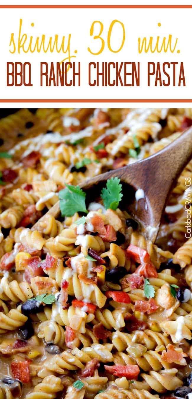 Skinny 30 Minute Santa Fe BBQ Ranch Chicken Pasta. I’ll meet you in my dreams.