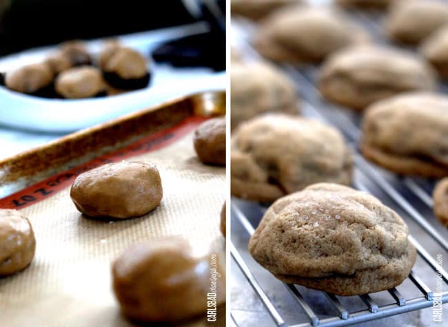 - Using a tablespoon or cookie scoop, scoop a ball of cookie dough and place it on the top of the Oreo cookie. Take a second scoop of dough and place it on the bottom of the Oreo. Seal edges of the cookie dough together around the cookie so the Oreo is encased in the center of the peanut butter dough ball. Place cookies onto a parchment or nonstick mat lined baking sheet 3 inches apart and sprinkle with sea salt.