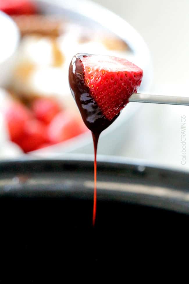 This Chocolate Fondue is rich, creamy and decadently delicious and 100% fool proof made in the crockpot!