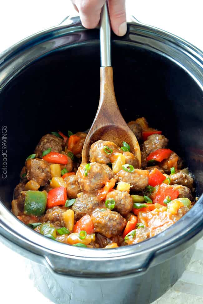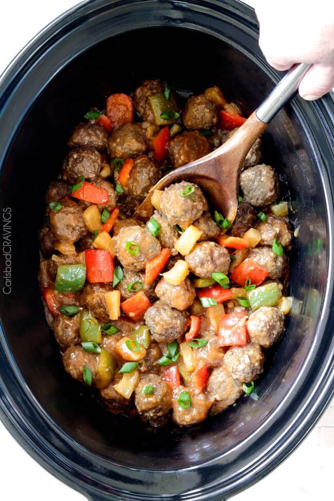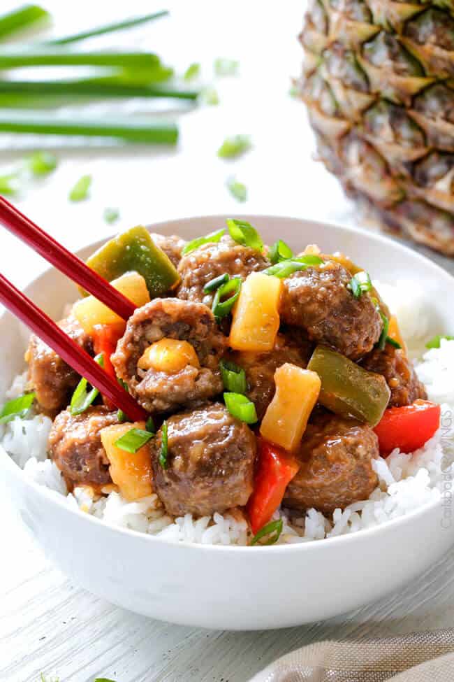 Slow Cooker Pineapple Stuffed Hawaiian Meatballs