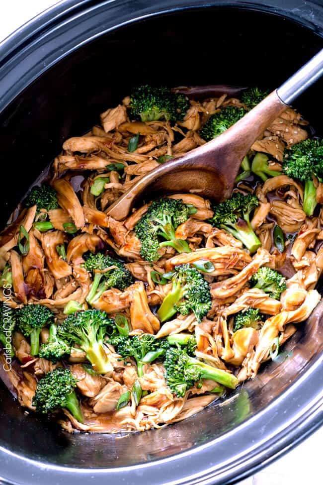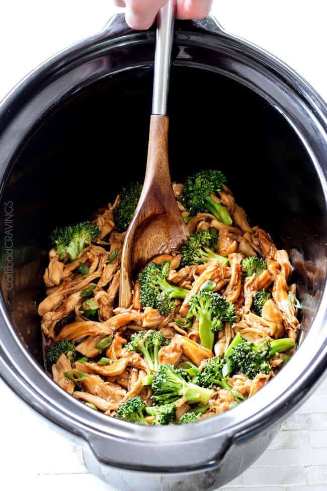 - Whisk together all of the Mongolian Sauce ingredients and pour ½ cup over chicken. Refrigerate the rest of the sauce. Cook on low for 5-7 hours or on high for 3-4 hours, or until chicken is tender enough to shred.