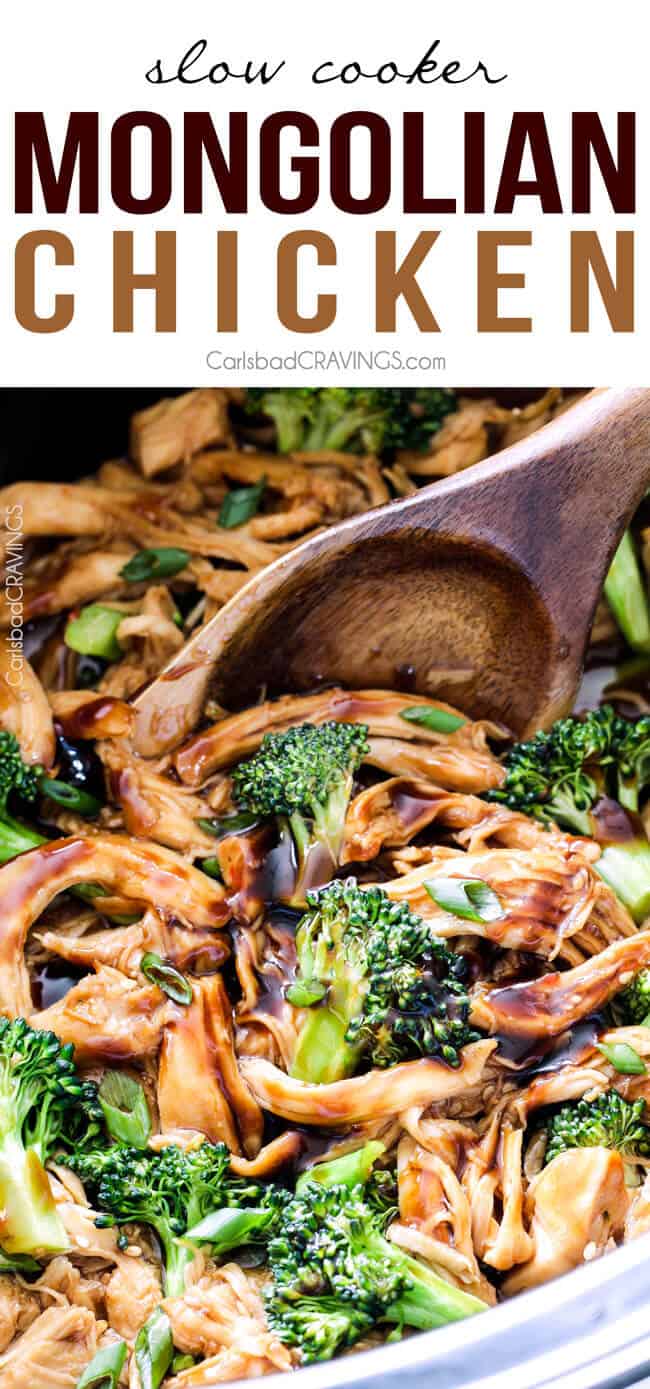 Story has it that a chef in a Chinese American kitchen needed a creative name for a new Asian dish and “Mongolian Beef” was born. Although I love my stir-fry Mongolian Beef version, I loooove my crockpot, and I love my always stocked chicken, thus this Slow Cooker Mongolian Chicken was born.]