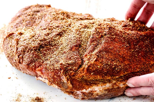 - Rinse pork and pat dry. Mix all of the rub ingredients together in a small bowl then evenly rub all over pork.