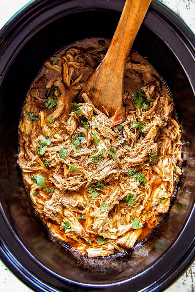 - Remove pork from slow cooker to cutting board, shred, and add back to slow cooker and toss with juices. Cook on low for 20-30 minutes. Taste and add additional honey or lime juice to taste.