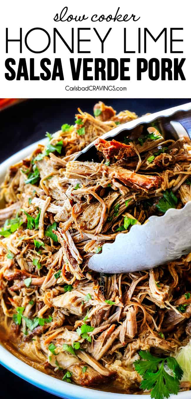 My Honey Lime Salsa Verde Chicken has been one of my most popular recipes since I posted it so by popular request, I’m bringing you this equally tantalizing, and even more juicy pulled pork version – and I am obsessed. This Slow Cooker Honey Lime Salsa Verde Pork is dripping with tenderness and tangy fiesta flavors. It is super versatile and the perfect make-ahead meat for busy nights or for tacos, salads, burritos, fajitas, enchiladas, etc. It also makes a ton so its fabulous for crowds or to freeze for later. Of course, you can always half the recipe as well. Let’s fiesta!