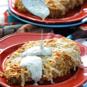 Chips, cheese, tomatillos, avocados, jalapenos, ranch – there is just so much to love about this chicken! It reminds me of a Mexican country fried chicken (except that its baked) with both crunchy and creamy in every savory bite. Every time I make this smothered chicken, I continuously exclaim to to myself how amazing it is. But now, I’m excited to share with YOU how amazing it is.