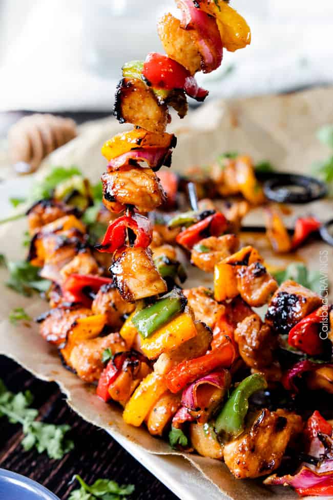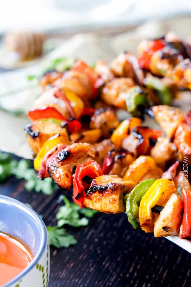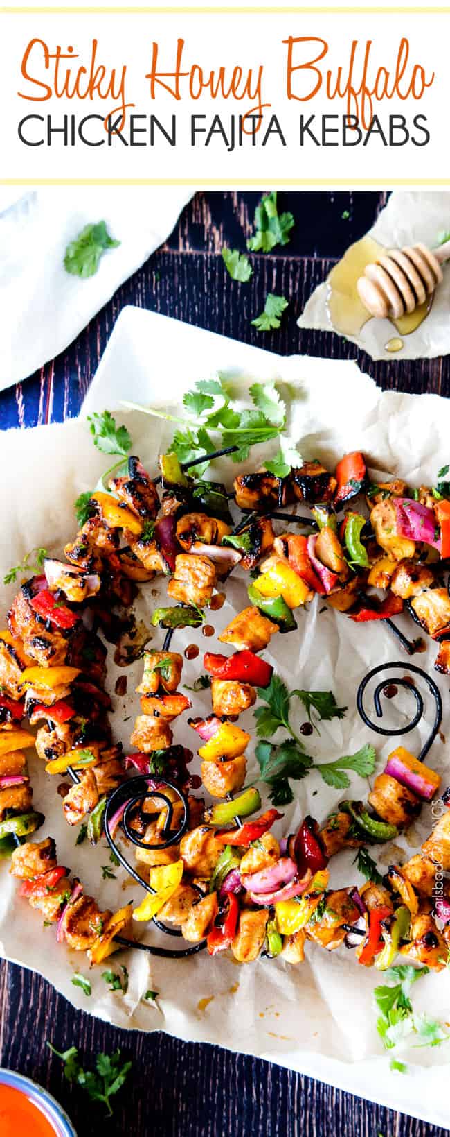 Sticky, sweet and spicy Honey Buffalo Chicken Fajita Kebabs marinated and doused in the most tantalizing sweet heat sauce that you will love forever and ever and ever.