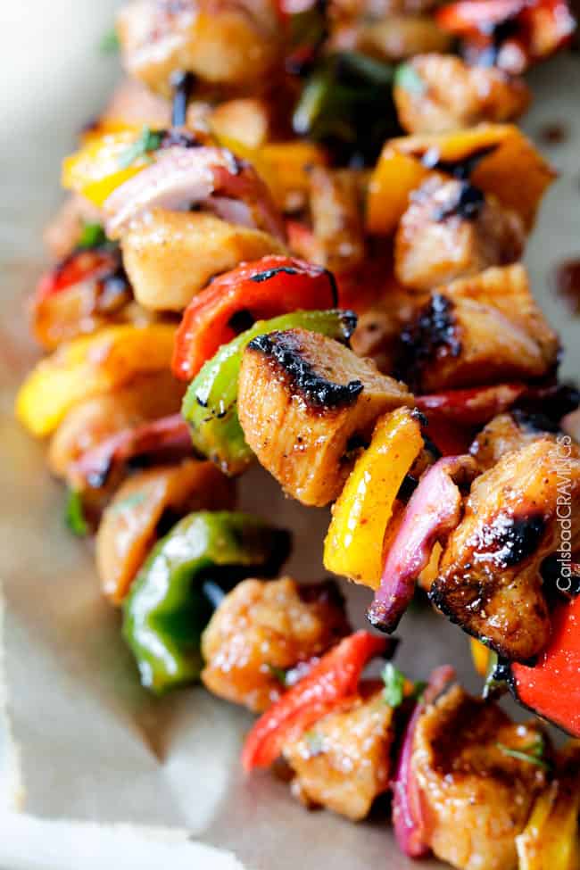 You let your chicken marinate in some of the sauce and after the chicken kebabs are grilled, you dunk and douse and smother your chicken fajita kebabs in the reserved sauce so every inch is sticky honey buffalo-icious. Because this sauce is amazing. And these kebabs are amazing. And you are amazing. And more amazing if you make these kebabs – especially in the eyes of all that devour them.