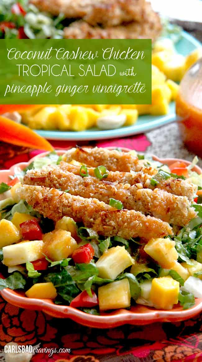 and my Coconut Cashew Chicken Tropical Salad with Pineapple Ginger Vinaigrette