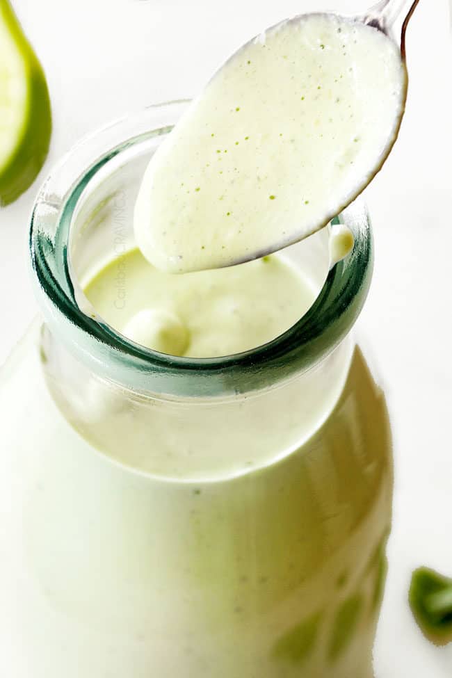 The smooth, creamy base is spiked with tomatillos, jalapeno, garlic, cilantro, lime and smoked paprika to create a luscious dressing packed with irresistible tangy, punchy flavor that can’t be beat!