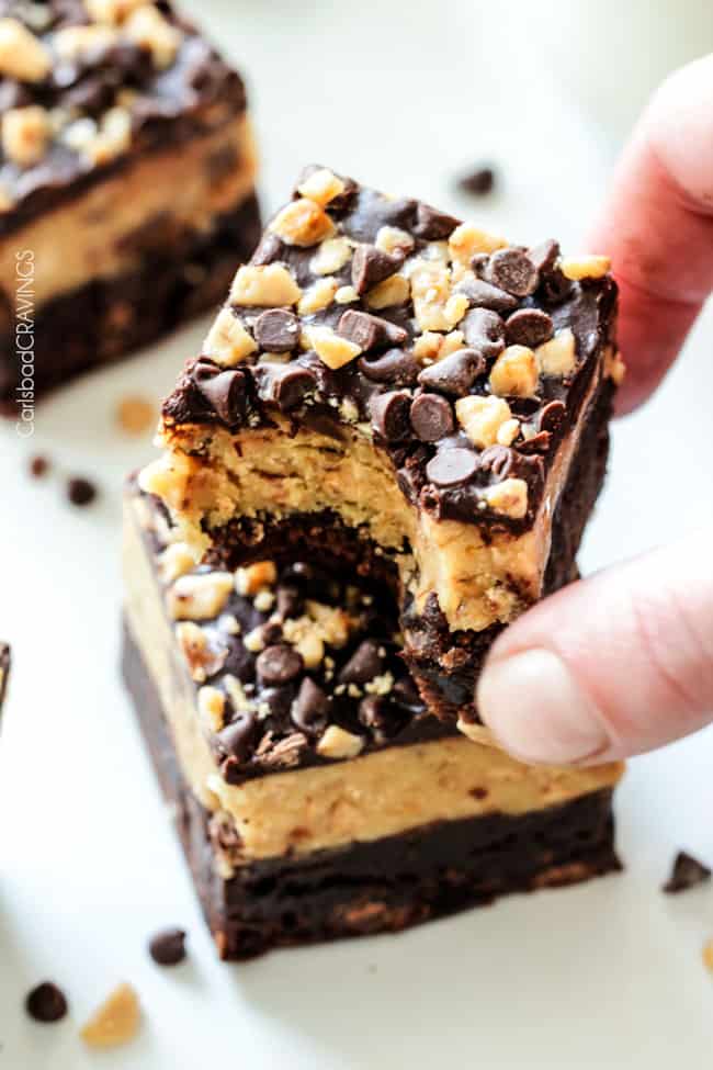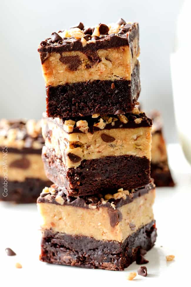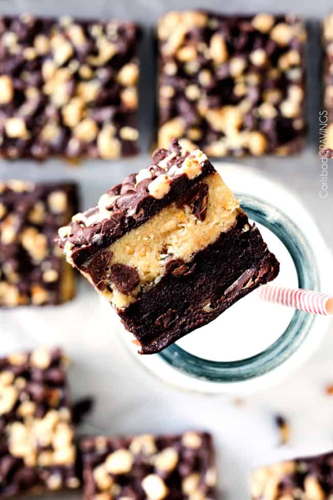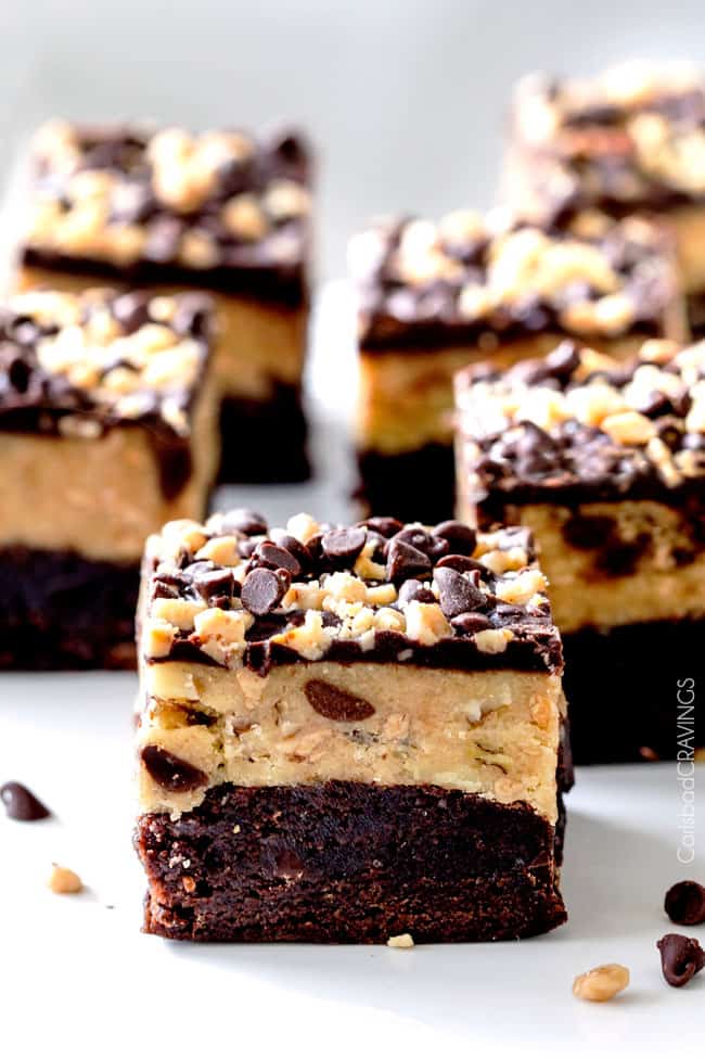 Together in a double layer of dense, chocolate chunk, fudgy brownie and eggless toffee, chocolate chip cookie dough all smothered with chocolate ganache. HEAVEN.