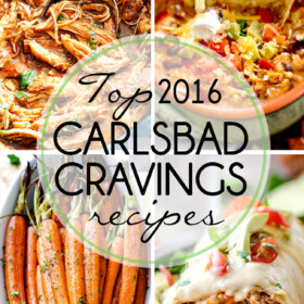 2016 as been an exciting year of LOTS of great food including about 150 new Carlsbad Cravings recipes. I love each recipe I post (otherwise I wouldn’t post it), and usually have a feeling before I post something if it will be a niche recipe that only certain people will want to try and love (like me 🙂 ) or if it will resonate with millions and go crazy on pinterest. Regardless of the outcome, I will always only post tried and true recipes that I am “craving,” so despite the hundreds of recipes that didn’t make it onto this “most popular” list, I hope you take a moment and check out my Recipe Index for more of my favorites. I will also be sharing my top personal favorites of 2016 in a separate post – you don’t want to miss those!