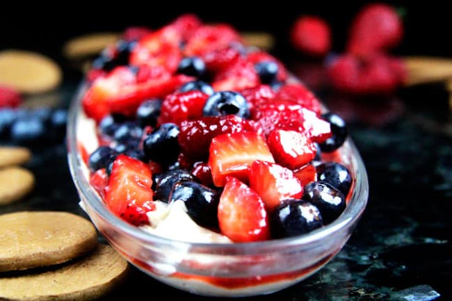 d) It’s actually better chilled. Love this fact because you can prepare the entire dessert beforehand for company or when you know you have a busy day ahead and simply pull out of the refrigerator, add the berries and serve!