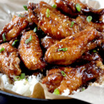 Bake on upper middle rack for 45-50 minutes or until golden. Move oven rack approximately 6-8" from broiler and broil to desired crispiness, watching closely so wings don't burn. Flip chicken wings over and broil the other side until crispy.