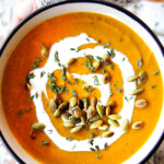 This easy Butternut Squash Soup is luxuriously creamy, rich, and velvety—yet completely low-fat and made without any cream! Packed with layers of warm, complex flavors, it’s no wonder readers are raving: “Anyone I’ve shared it with says it’s one of the best soups they’ve ever had,”“Literally the best soup I’ve ever had. Seriously,” and “So delicious on a cold winter day!!”