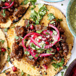This easy steak taco recipe is epic! The steak tacos are ridiculously quick and easy, melt-in-your mouth tender and exploding with flavor. The steak is tossed in a sensational spice rub (no marinade required!), pan-seared to juicy perfection, loaded into warmed tortillas then piled with all your favorite toppings such as roasted poblano crema (recipe included), guacamole, salsa,