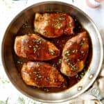 Mix chicken broth with cornstarch and add to the skillet, followed by all of the sauce ingredients, including the 1 tablespoon reserved flour mixture. Bring sauce to a simmer while scraping up any brown bits on the bottom of the pan; simmer until sauce thickens to desired consistency, stirring often. Taste the sauce and add additional lemon juice for tangier/less sweet if desired.