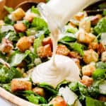 This homemade Caesar Dressing recipe is a creamy, bright, tangy, garlicky, umami explosion of YUM. It will blow any store-bought version out of the water and elevates and enlivens everything it touches from Caesar salad to vegetables, to chicken, to sandwiches to wraps. Best of all, this Caesar Salad Dressing doesn’t contain any raw eggs so it’s easy to make and will last up to two weeks in your refrigerator, should you be so lucky. It doesn’t get any better than this Caesar Dressing my friends, let’s make some!