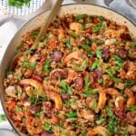 Add Meats and Rest: Remove the pot from the oven, stir in the lemon juice, chicken, and sausage. (The rice will firm up as it rests - see science in post.) Top the rice with the shrimp, cover, and rest for 10 minutes undisturbed.