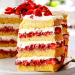 This Strawberry Shortcake Cake is everything you love about strawberry shortcake – but with more layers to love! Soft, light, buttery chiffon cake is layered with bright, juicy strawberries and luscious cream cheese whipped cream, then layered again and again for an irresistible dessert all spring and summer long. This from scratch Strawberry Shortcake Cake recipe is fresh yet decadent at the same time and guaranteed to become a new family, neighbor, friend, mailman favorite. I’ve included step by step photos, tips and tricks and everything (and more!) you need to know about how to make this Strawberry Shortcake Cake recipe a runaway, sweet, tender, succulent success! I’ve also included how to prep ahead and how to freeze – now there is no reason not to make this Strawberry Shortcake Cake and every delicious reason to make it!