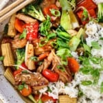 Velvet Chicken: Whisk the velveting ingredients in a large freezer bag or bowl. Add the sliced chicken and turn to coat. Marinate at room temperature while you prep your sauce and veggies; ideally 20-30 minutes, but no more, or it can become mushy.