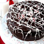 Optional Garnish: Melt peppermint candy melts at MEDIUM (50% power) until mostly melted then stir until smooth. Stir in 1 teaspoon shortening and add to a plastic bag, snip the corner and drizzle over cake. Garnish with crushed candy canes.