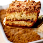 This coffee cake is the perfect balance of crispy, soft, buttery, and spiced goodness perfected through meticulous testing and expert technique! It delivers a buttery, moist crumb thanks to Greek yogurt (superior to sour cream), a rich cinnamon-brown sugar middle, and an irresistibly crispy streusel topping that stays crunchy, thanks to melted butter (NO pastry cutter needed!).