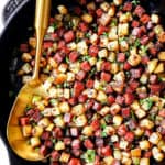 Next, spread everything into an evenly layer in the pan and cook undisturbed for a couple minutes, then stir and repeat a couple times until the skillet is golden and crispy all over. Season to taste with salt and pepper.