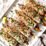 How to serve: I recommend small bowls of extra chili powder, cayenne pepper, cilantro, lime wedges and Cotija, so individuals can customize their elote.